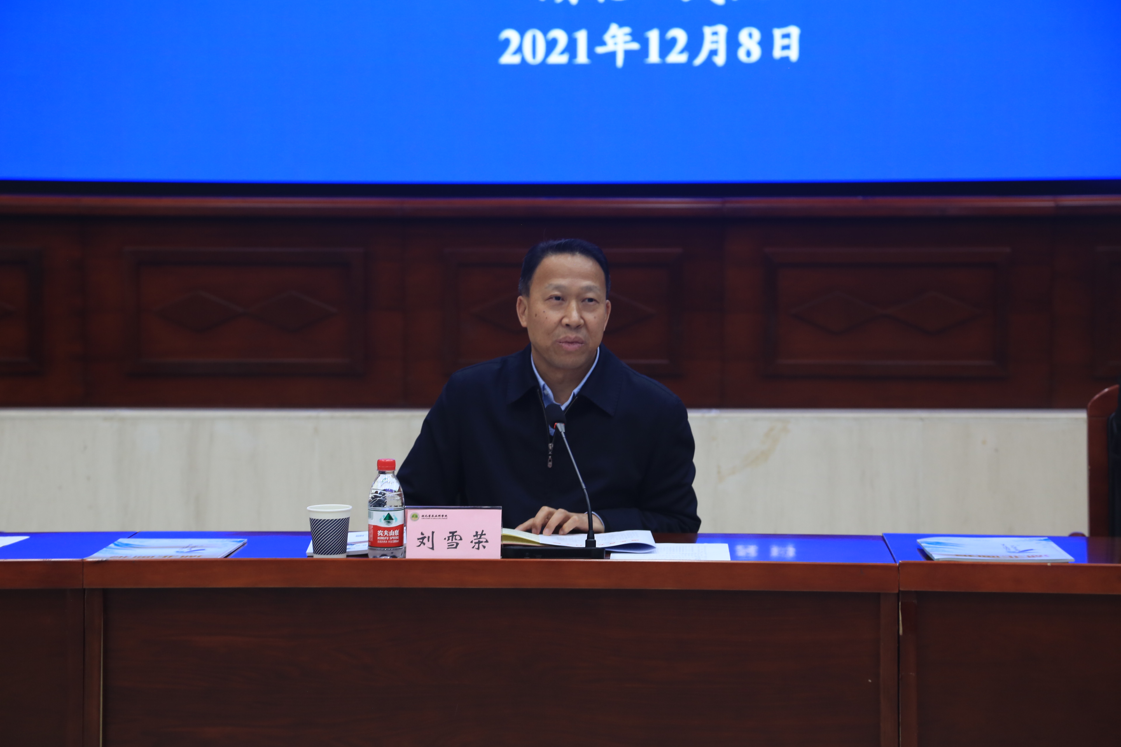 2021年12月8日,省人大常委会副主任刘雪荣来院调研农业科技助力乡村振兴工作,宣讲党的十九届六中全会和省委十一届十次全会精神。省人大常委会委员、农委主任委员肖伏清,省人大常委会副秘书长刘旻,省人大常委会委员、农委副主任委员涂胜华、省人大农委专职副主任委员成文心,省人大农委相关部门负责人参加。院党委书记刘晓洪,院长焦春海,副院长邵华斌、游艾青,各研究所(中心)、院机关相关处室负责人参会。