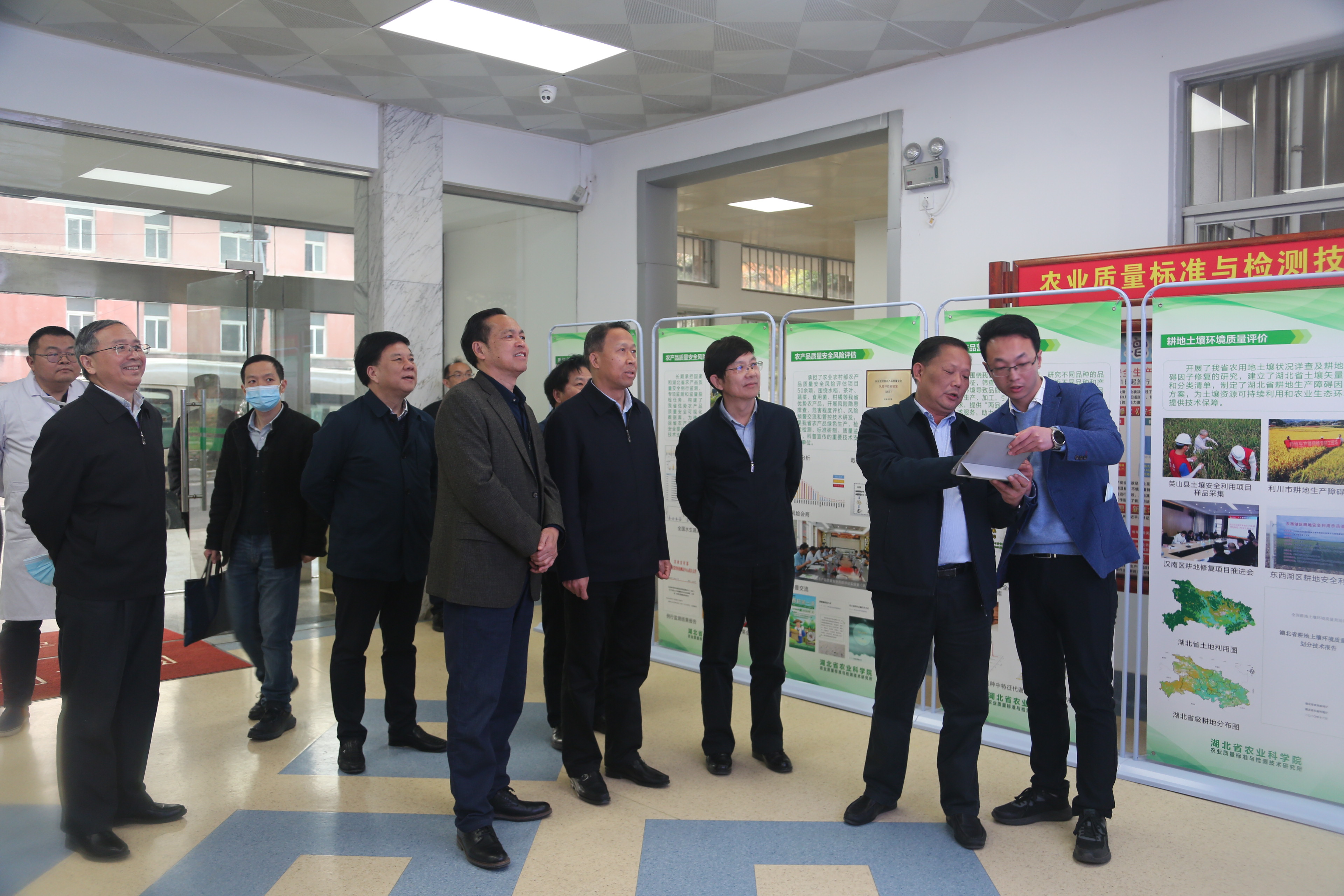 刘雪荣一行实地调研了我院粮食作物种质创新与品种改良湖北省重点实验室,果茶科技展示园、湖北省茶叶工程技术研究中心,健康蔬菜创新工场,农业农村部食品质量监督检验测试中心(武汉),参观了我院建院70周年成就展,随后召开座谈会。