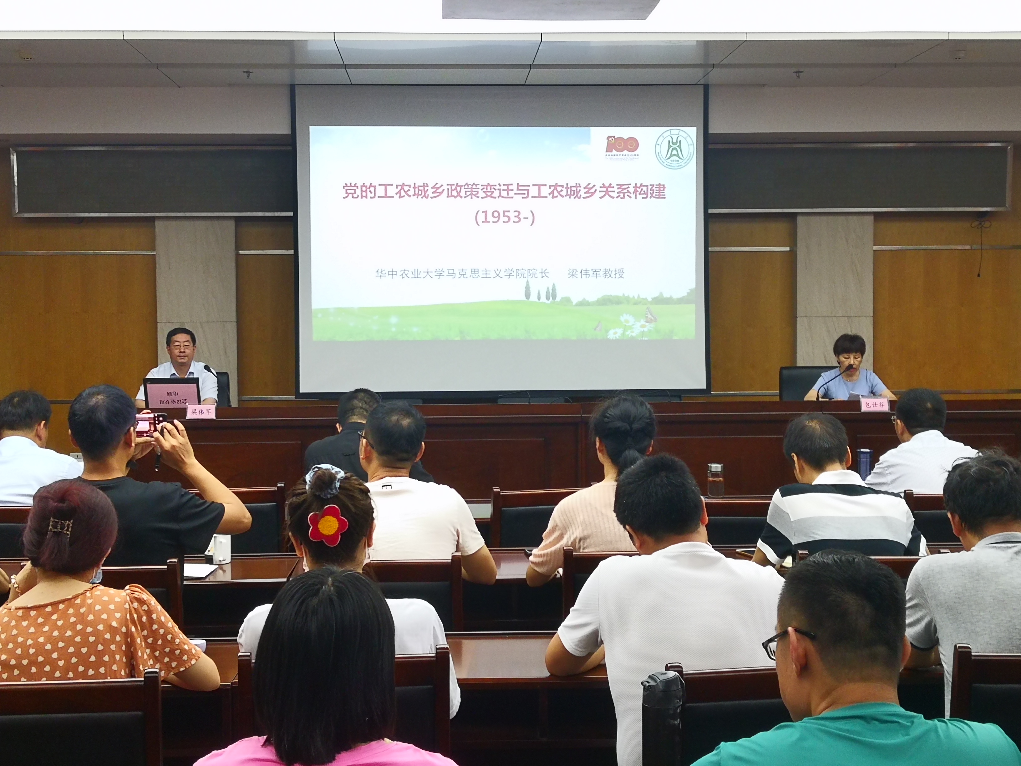 为深入推进党史学习教育工作, 6月18日,植保土肥所党委举办党史学习教育专题读书班活动,邀请华中农业大学马克思主义学院院长、省委讲师团成员梁伟军教授到我所开展题为“党的工农城乡政策变迁与工农城乡关系构建(1953-)”的党史学习教育宣讲报告会。会议由植土所党委书记主持,领导班子成员和全体在家党员干部职工共计60余人参会。