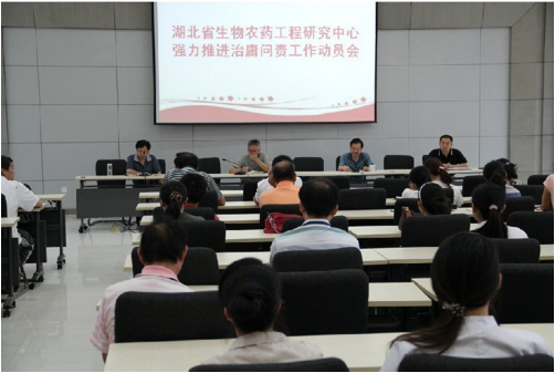 22日下午,湖北省生物农药工程研究中心召开“强力推进治庸问责工作动员大会”,迅速传达了省直机关治庸问责工作动员大会精神。会上,杨自文主任作了动员报告,舒金树书记对中心的治庸问责工作进行了具体部署。