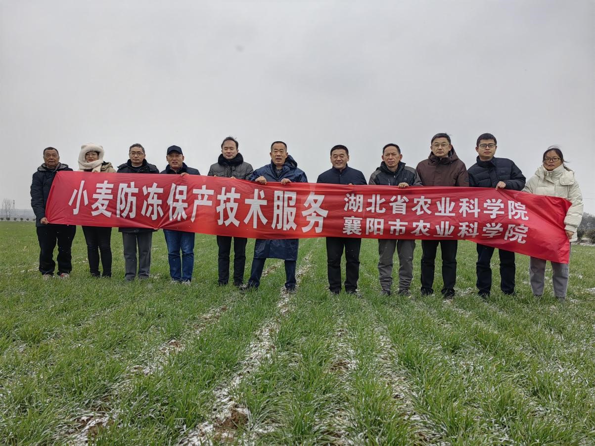 省农科院成果转化处副处长黄立清带领高春保研究员、袁斌研究员、襄阳市凌冬研究员、郭光理高级农艺师等专家,到襄州区黄集镇富新利种植合作社和湖北扶轮种业公司等示范基地,指导大户加强小麦、油菜田间管理,降低冻雨天气的危害。据调查,襄阳地区大部分田块小麦播种推迟,弱苗和旺长田块较少,一、二类苗抗寒性较强。总体来说,本次降雪对小麦生长利大于弊。专家建议:播种较迟的弱苗、黄苗田块,小麦抗逆能力较弱,植株体内养分储存不足,易发生冻害,要抢雨雪天及时追施尿素或叶面喷肥,促弱转壮,降低或避免冻害发生;已经发生冻害的田块,可根据冻害程度,及时追肥促进恢复。